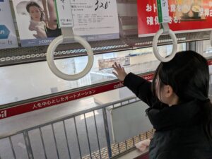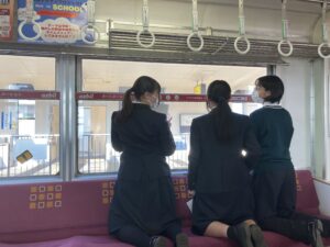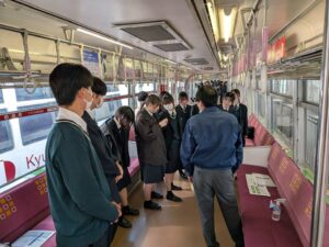 2025年10月から小倉商業高校に数回伺い、生徒たちと車窓に貼るステッカーのデザインを考える授業を実施。生まれたアイデアをもとにステッカーを作成し、2026年3月16日(月)、北九州市小倉南区企救丘のモノレール企救丘駅で生徒たちが車窓に貼り付けました。