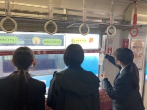 小倉商業高等学校、北九州高速鉄道株式会社による連携プロジェクトを今年度も実施しました。これは、小倉商業高校の生徒たちがデザインしたステッカーをモノレール車両の車窓に貼り付け、乗客の皆さまに新たな景色をお楽しみいただく取り組みです。
